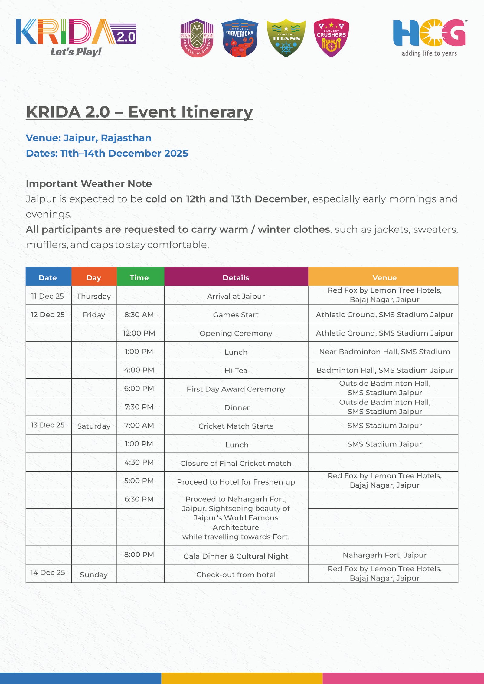 We look forward to your enthusiastic participation and hope you make unforgettable memories during KRIDA 2.0. Let’s come together to celebrate the joy of sports and the spirit of togetherness!