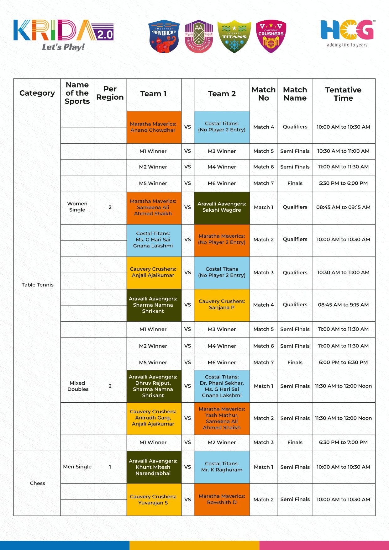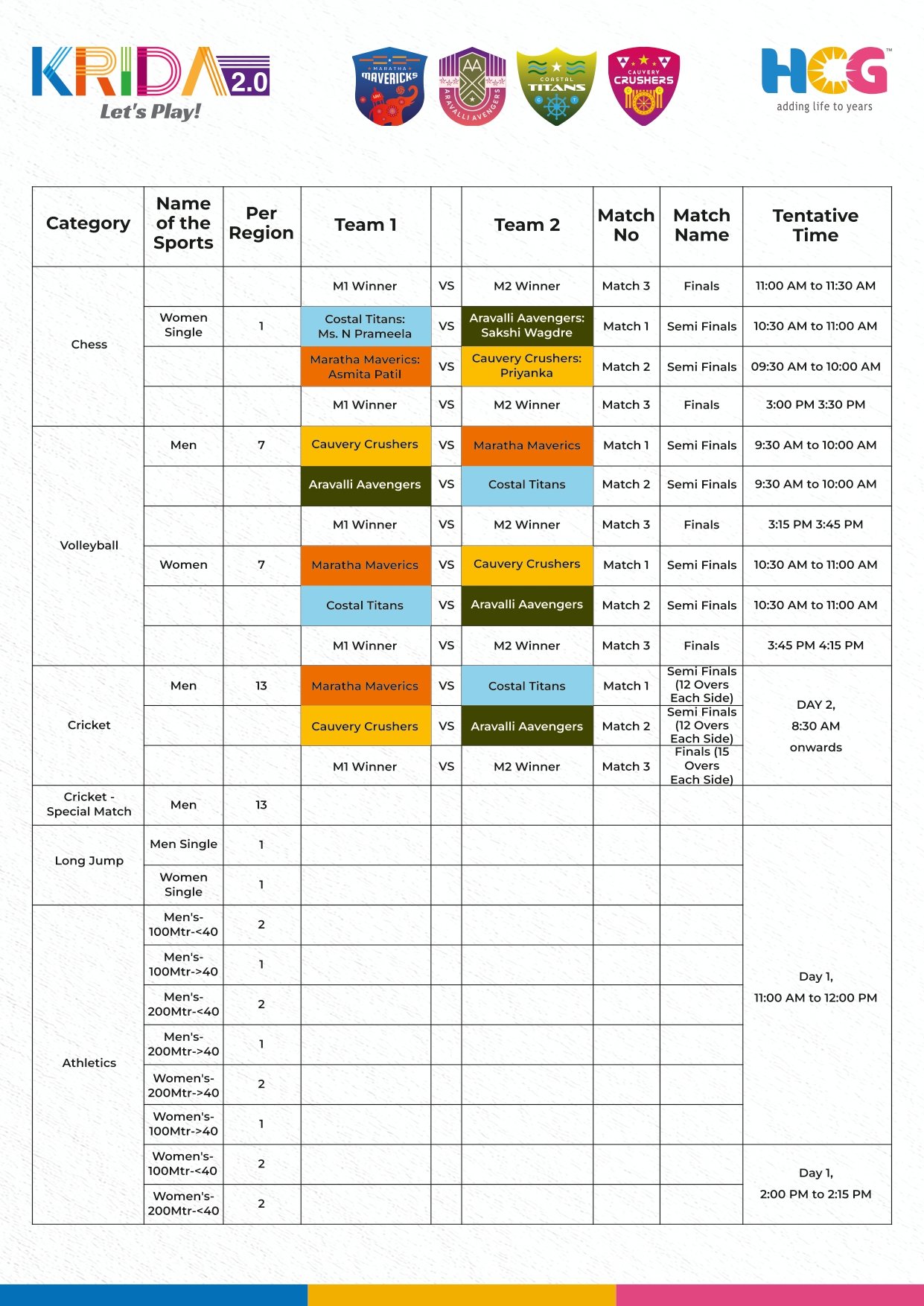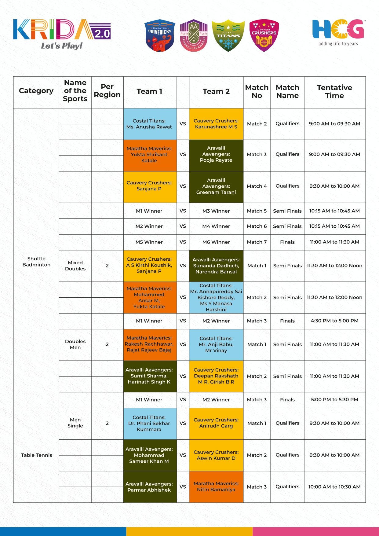 All Game Schedule on time with venue details