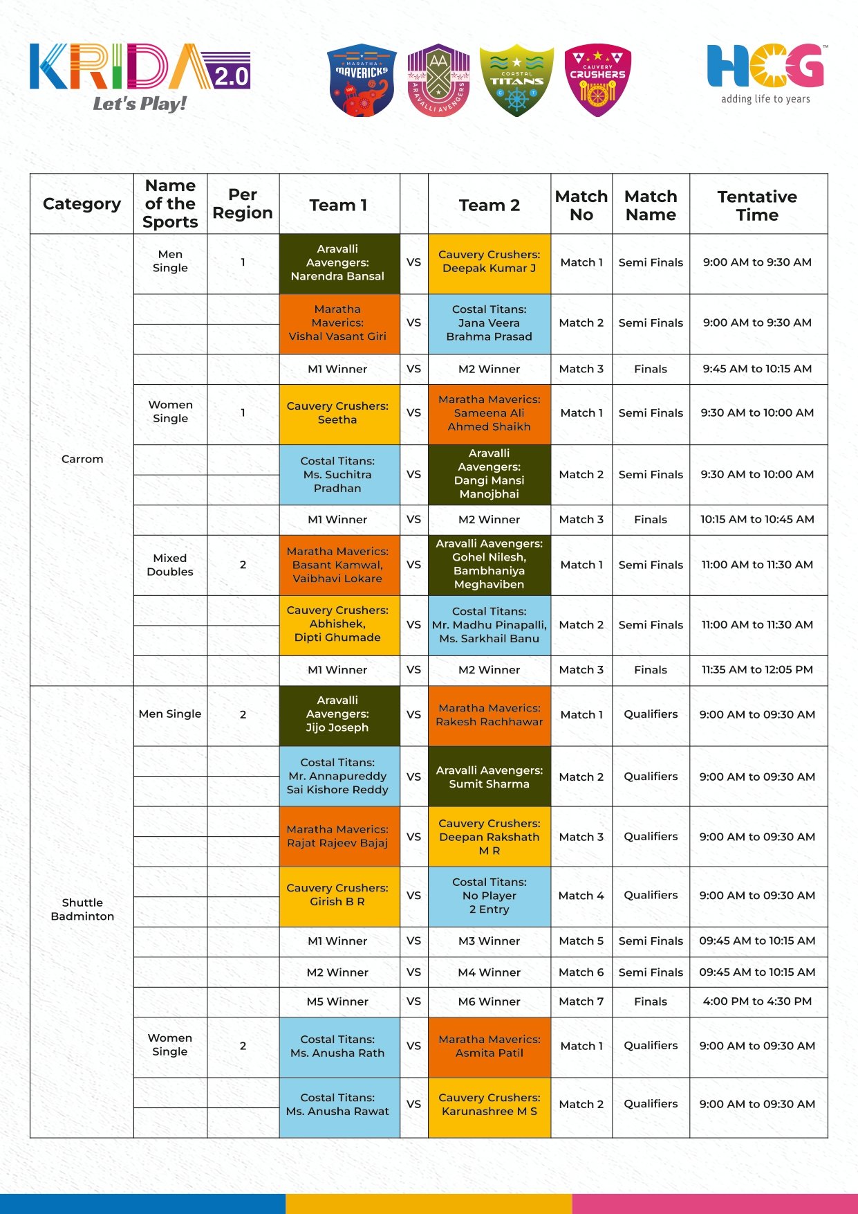 All Game Schedule on time with venue details